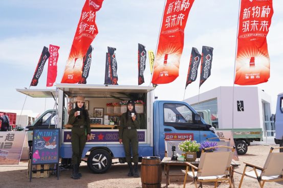 此次共有四辆北汽雷驰新能源MINI卡亮相,车身小巧,颜色时尚,加上流线型设计,尽显时尚轻巧之美。虽不能像其他“老大哥们”一样驰骋沙海、纵横大漠,新能源MINI卡的出现也为这场猛汉云集的越野盛会带来了时尚萌感的气息。在阿拉善主会场的核心区域,原本是城配物流工具的北汽雷驰新能源MINI卡在这里展示了自己的“隐藏技能”,只需要简单改装,新能源MINI卡就摇身一变,成为了沙漠里的移动咖啡店,为来到这里感受越野文化的人们送上香气四溢的咖啡,还能作为移动啤酒屋、移动书店、移动美食车、移动便利店等。