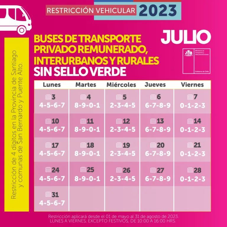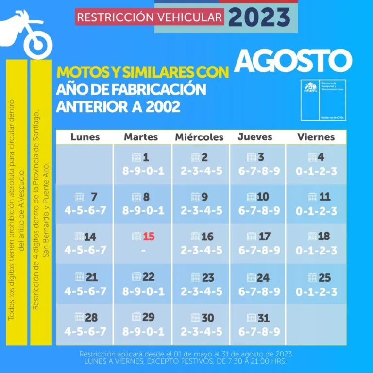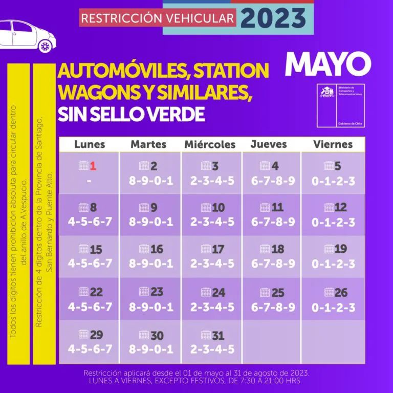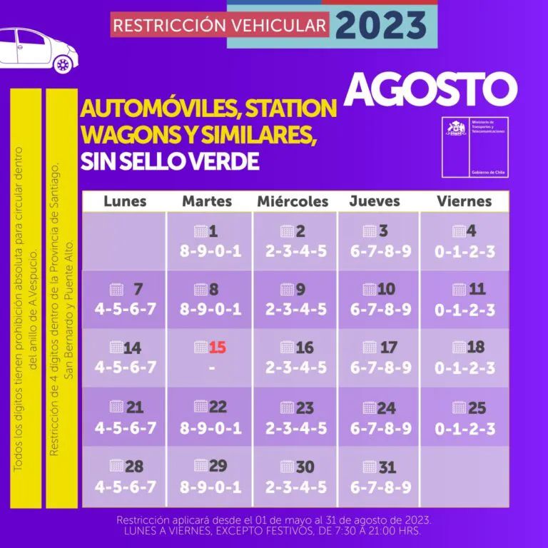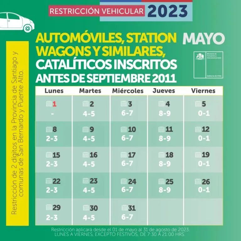 交通部公布了2023年圣地亚哥冬季限行日期的规定,规定将会从5月2日开始实施,一直到8月31日为止。