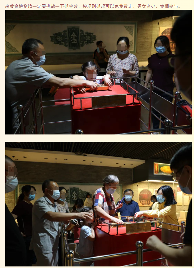 5月4日上午,记者联系了山东招远淘金小镇黄金博物馆景区,一位工作人员告诉记者,这个抓金砖的挑战之前就有了,接受挑战的25公斤金砖是一块梯形金砖,上部窄、下面宽,放置在台上,挑战者需要一只手拿起来,“小面朝上,平举25秒。”