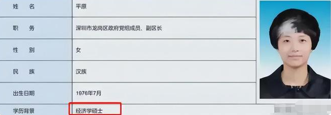 此外,根据龙岗政府在线网站“信息公开>领导成员”栏目显示,平原:深圳市龙岗区政府党组成员、副区长。相关简介为:女,汉族,1976年7月生,经济学硕士。