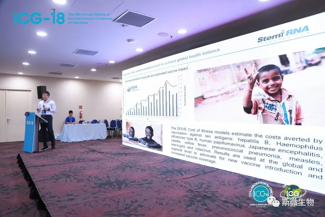 在此次国际基因组学大会第十八届年会上,斯微生物创始人、董事长兼首席执行官李航文博士分享了主题为斯微生物创新mRNA平台技术在解决全球卫生健康发展不均衡问题中的应用(StemiRNA’s Innovative mRNA Platform Technology in Addressing Global Health Development imbalances)的专题报告。并介绍了斯微生物在mRNA平台上得天独厚的技术优势,公司针对于新型冠状病毒开发的mRNA疫苗研发进展以及公司在预防性疫苗和癌症疫苗领域所做出的努力,用创新技术解决未满足的临床需求,为改善全球公共卫生发展失衡的现状做出努力。