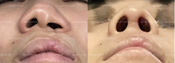 唇裂术后早期,鼻子看起来挺翘、挺立体的,但是后期由于皮肤张力的持续变化,发生了挛缩,导致鼻尖上旋、变短,甚至出现偏斜。这其中除了患者术后护理的因素,也跟当初手术设计时,医生是否有考虑到中隔移植物在固定后,添加于鼻尖软骨的承受能力相关。