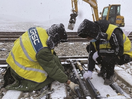 当时,白天的气温已经在零度徘徊,暴雪让施工雪上加霜。气温急剧降低,参建人员即使穿上了厚厚的棉衣、棉鞋,还是冻得直打哆嗦,负责设备安装、配线的工人更是冻得伸不出手来。厚厚的积雪掩盖了线路旁电缆的位置,参建人员走在积雪里一步三滑,一不留神就会与地面来个亲密接触。电缆沟的开挖更是困难,首先要清除厚厚的积雪,锹镐触碰雪地一下一个白点,钢钎、电镐齐上阵才勉强提高了一点开挖的进度。寒冷的天气让氧含量变的更低,身体稍加用力,便要喘上好久。为了挖出被大雪掩盖的设备,中国通号信号专业党员突击队长许钊潭带领党员群众,钢钎、电镐齐上阵,电缆开挖、插入道岔同步推进。2022年10月30日,通过5小时的艰苦奋战,轨道电路倒接完成,信号机如期点亮,道岔正常转换……为那曲站信号联锁设备顺利开通画上圆满句号。