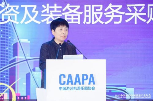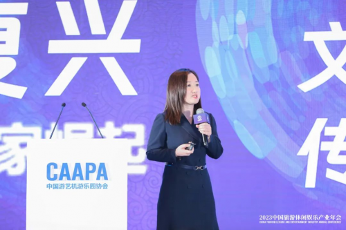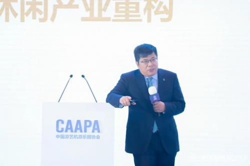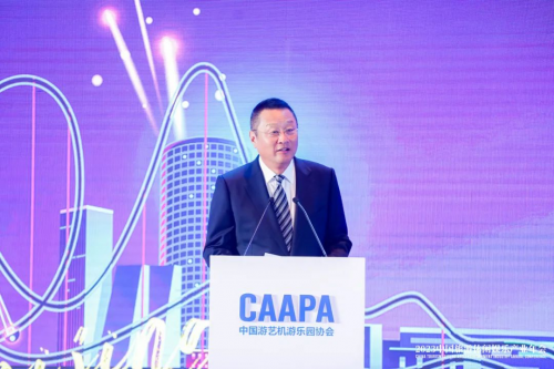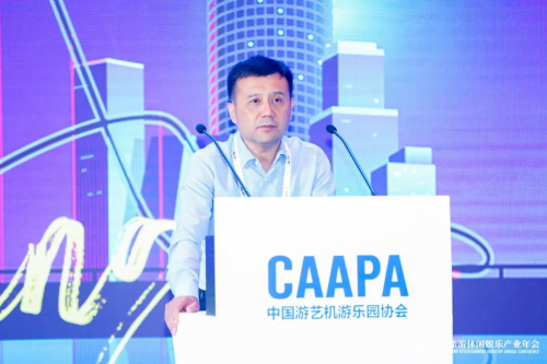 7月11日,中国游艺机游乐园协会(CAAPA)主办的2023中国旅游休闲娱乐产业年会在北京成功开幕,文化和旅游部资源开发司一级巡视员王鹤云,中国旅游研究院院长戴斌,中国游艺机游乐园协会会长姚军,中国游艺机游乐园协会副会长、华强方特文化科技集团董事长戎志刚,中国游艺机游乐园协会副会长李绳宗,中国游艺机游乐园协会副会长、融创文化旅游发展集团有限公司副总裁王炜,中国游艺机游乐园协会副会长、哈尔滨市太阳岛风景区资产经营有限公司党委书记、董事长赵经涛,中国游艺机游乐园协会副会长、广东金马游乐股份有限公司董事长邓志毅,中国游艺机游乐园协会副会长、中山市金龙游乐设备有限公司董事长叶威棠,中国游艺机游乐园协会副会长、浙江南方文旅科技股份有限公司董事长陈建生,中国游艺机游乐园协会副会长、成都泰隆游乐实业有限公司裴力,中国游艺机游乐园协会秘书长许萍等领导出席了会议。