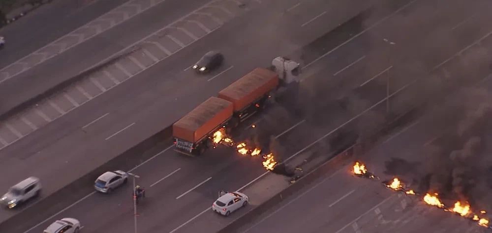 联邦公路警察称,在费尔南迪亚斯高速公路上,前往贝洛奥里藏特(Belo Horizonte)方向86公里处,示威者放火焚烧木头和轮胎,封锁了离开圣保罗的所有车道,交通拥堵长达3公里。现场有大约150人 高喊着口号。宪兵赶到现场后,发射电击枪和毒气弹驱散了示威者。通往贝洛奥里藏特方向的车道已经开放。