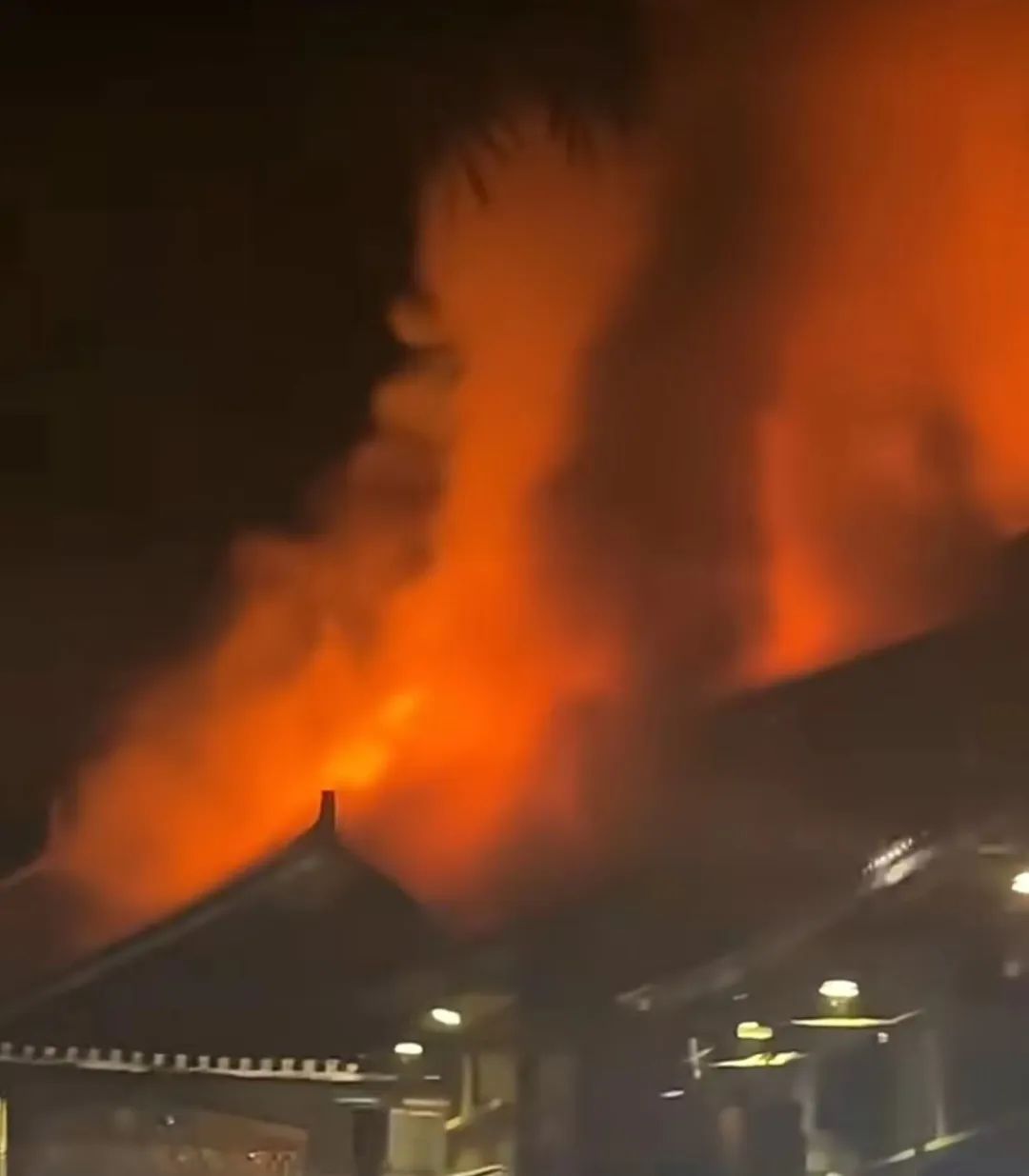 现场火光冲天。图源:视频截图房女士称,这家客栈营业有大概5年了,一个有5楼,楼顶是瓦盖的,下面是砖房。房女士称,她老公在救火时被屋顶掉下来的瓦砸伤,现在还在医院。距离着火客栈不远处的一家旅馆老板表示,事发后她老公还有周围游客都有帮助灭火,“大家都挺团结的。”一位参与救援的目击者告诉记者,现场的火势很大,一下子就冲起10多米。“我们直接就去房顶救火了,用抽水的水泵灭火。因为光是消防车和消防员的话不够。有几百个人在这里救援。烟雾大的时候遇难者就逃不出来。”另据报道,同景区另一客栈老板称:“今天客人都不能入园,现在需要景区停业整顿,三天入不了园。”地图显示,出事的“梦幻肇兴”客栈位于肇兴侗寨旅游景区内邮局斜对面,距景区停车场300米。