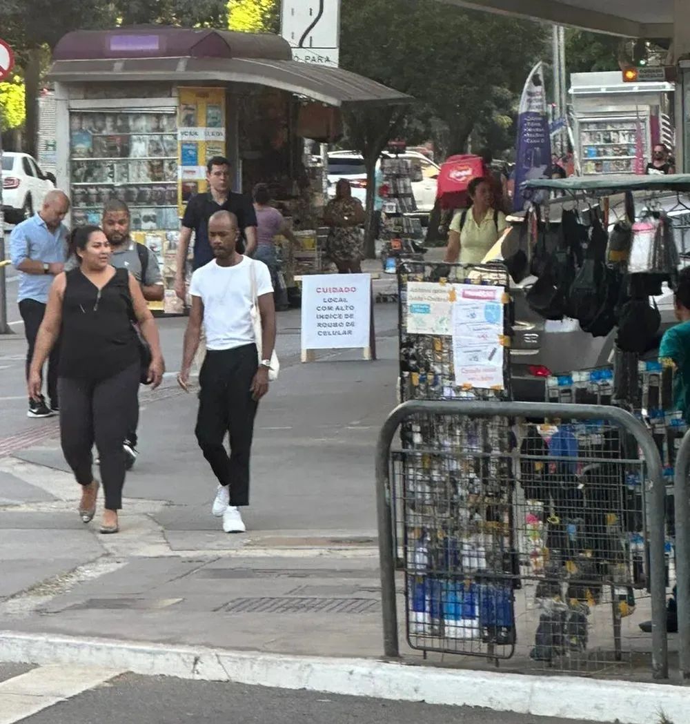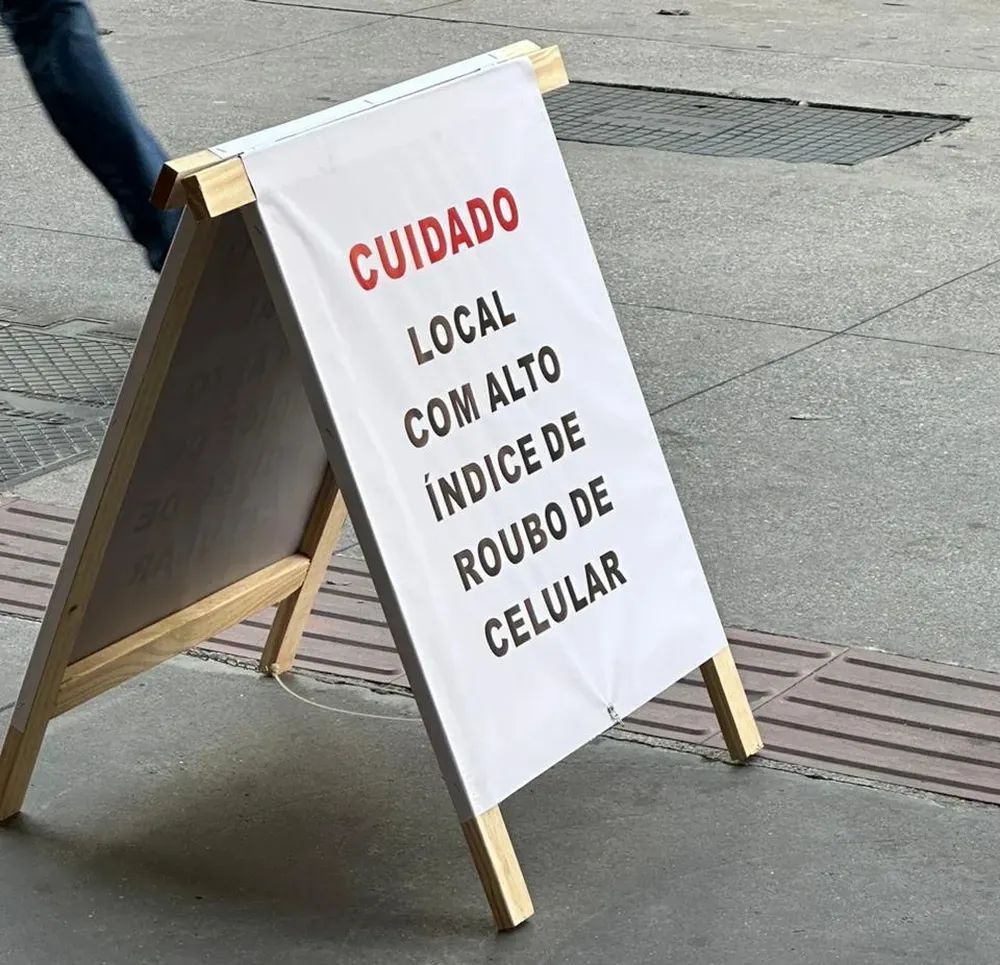 雷布萨斯大道(Avenida Rebouças)的拐角处树立了多个警示牌,这是圣保罗市最繁忙的路口之一。有些行人看到警示牌后,直接就把手机收了起来。 在该地区工作的商人称,这些海报是大道上一栋建筑的经理留下的。下午 6 点后该地区变得更加危险。