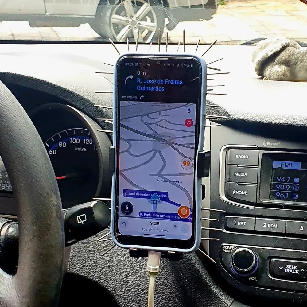 圣保罗西区的一名乘客在使用打车软件叫车时,发现司机使用带有钉子的手机壳并拍摄下来,照片在巴西社交媒体上疯传。