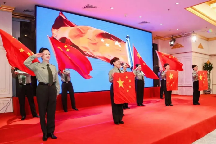 随着《歌唱祖国》的主旋律11位潇洒女兵用优美的舞蹈拉开了大会序幕,会议总指挥周玉春指示大会正式开始。