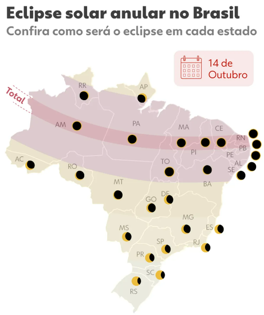 正在阅读:周六(10 月 14 日)日食现身,巴西部分地区可见日环食