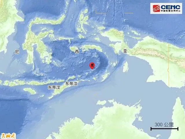 据中国地震台网正式测定,北京时间11月8日12时52分(当地时间11月8日13时52分)在班达海发生7.1级地震,震源深度10公里,震中位于南纬6.55度,东经129.45度。