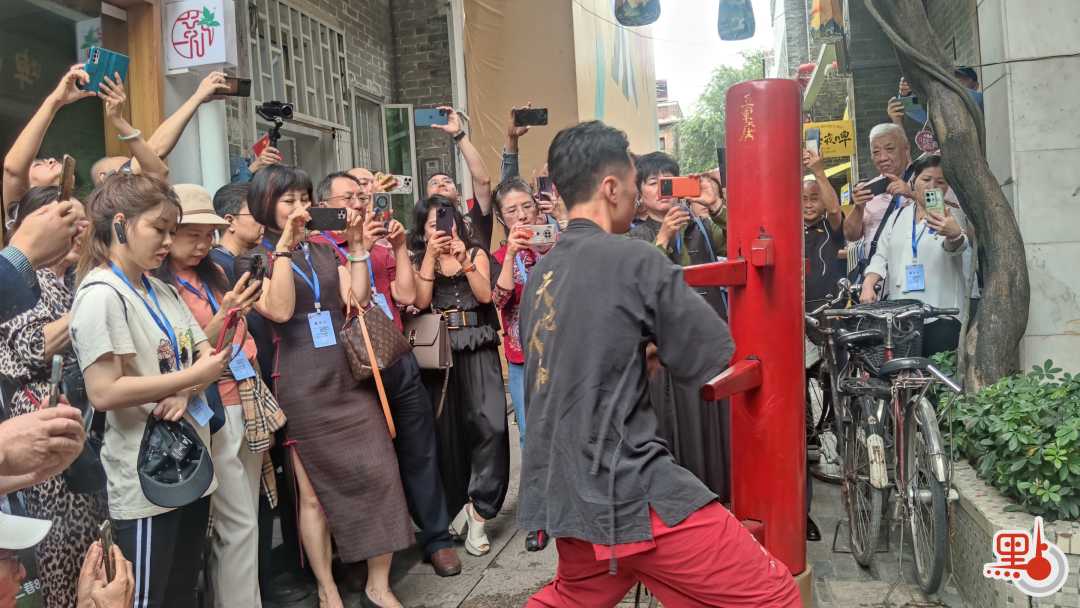 【巴西华人网讯】11月10日上午,2023海外华文传媒合作组织广东高质量发展主题调研团走访了广州非遗街区永庆坊。在粤剧武打行“銮舆堂”,粤剧红船木人桩108式传承人、澳门国家级非物质文化遗产武术协会理事长李健豪,正带领弟子练习咏春拳。“噔、噔、噔”,手臂与木桩铿锵有力的碰撞,吸引了一众华媒高层。在李健豪的示范和带领下,部分团员还亲自上阵体验。参与体验的华媒高层说,拳脚之间,彰显尚武精神,来到南派武术发源地一线体验,非常过瘾。
