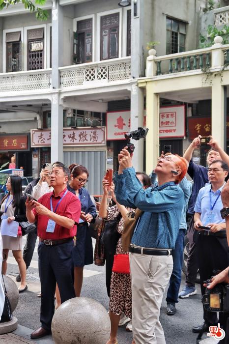 2023海外华文传媒合作组织广东省高质量发展主题参访调研团游览永庆坊。(点新闻记者李紫妍摄)