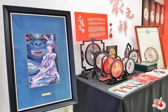 在非遗街区,传统技艺也在寻求新生机。王新元的广绣工作室大门设计成了大红丝线笼罩的样子,橱窗里展示着一套精美的广绣婚服,入口处摆放一幅《斗罗大陆》主角小舞的绣像,浓浓的二次元画风抢眼地打破着来客对传统非遗文化的固有印象。他告诉记者,粤绣(广绣、潮绣合称粤绣)在中国四大名绣中的知名度偏低,传承人普遍老龄化,面临着传承断崖的危机。为此,作为青年传承人的他不断探索着一条创新传承道路。