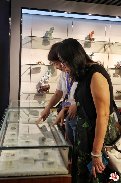 调研团成员驻足欣赏非遗作品。(点新闻记者李紫妍摄)