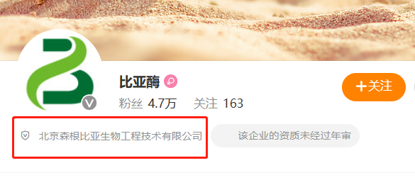 而比亚酶官方微博则显示,被告北京森根比亚生物工程技术有限公司为比亚酶的运营主体。