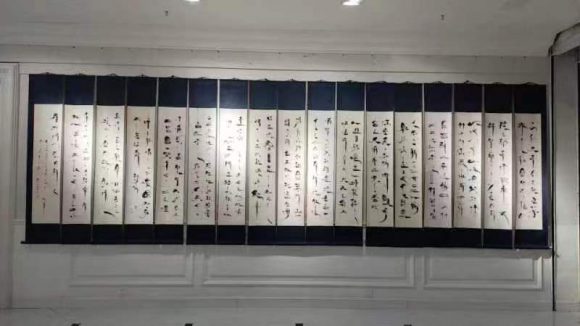 尘封近二十年的古版《道德经》136米长卷,首次面世,大连电视台已航拍记录收藏,图为部分长度。