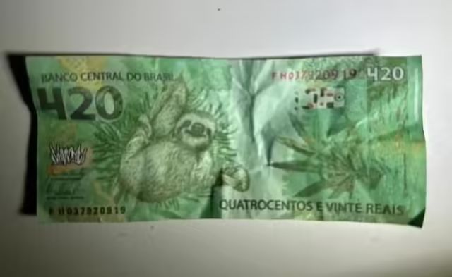 周六(16日),两人在托坎廷斯(Tocantins)北部的阿拉瓜伊纳(Araguaína)因贩毒被捕。宪兵发现了一张面值 420 雷亚尔的纸币,纸币上印有树懒和大麻叶的图像。