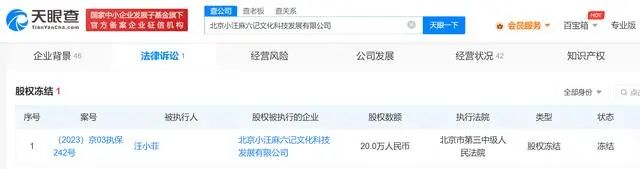 天眼查App显示,近日,汪小菲新增一则被执行人信息,执行标的748万余元,执行法院为北京市第三中级人民法院。除了这笔高达748万的执行令外,风险信息还显示,此前,汪小菲所持有的三家公司,包括合润麟(北京)食品有限公司、北京合尊置业有限责任公司、北京小汪麻六记文化科技发展有限公司的大量股权也遭到了冻结。这些公司的股权价值分别为920万、347万、20万,均已被北京市第三中级人民法院采取冻结措施。麻六记是由汪小菲等人创建的川菜品牌,成立于2020年8月,目前在线下有18家实体餐厅(北京12家、上海2家、成都4家),线上也开拓了酱料、速食、零食、火锅底料、预制菜等各类食品。不久前,在12月21日举行的新浪财经2023年会暨第16届金麒麟论坛上,麻六记品牌创始人汪小菲表示,家里不存在“家族企业”,家里其实就他一个人,没有什么传承,“我母亲我父亲都是工人,也都是上世纪90年代才创业的。结果跟着他们一块在餐馆里打工创业,然后从小过苦日子,传承只能传承他们的精神。可能这个话题要留给我的儿子,和我的孙子他们去探讨了。”他在谈到近期公众关注的董宇辉事件时表示,在企业、在社会里,分工扮演的角色应该是非常明确的,有的人是好的CEO,但不一定是好的董事长。公开资料显示,汪小菲,国内商界人士。2010年11月,汪小菲和艺人大S(徐熙媛)在北京登记结婚;2011年3月22日,两人在海南三亚举行婚礼,婚内育有一女一子;2021年11月,两人离婚
