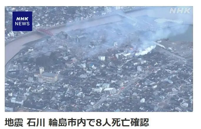 据日本放送协会(NHK)最新消息,截至目前,日本石川县轮岛市已有8人因地震死亡。