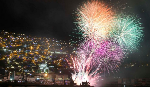 今年元旦,超过5万人参与瓦尔帕莱索过新年放烟花活动。