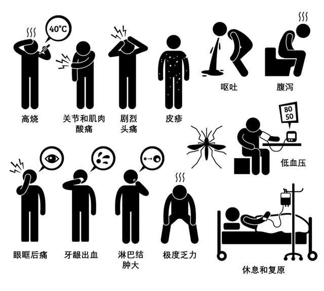 登革热是一种由蚊子叮咬传播给人类的传染病,每年夏秋换季时期是高峰期。感染后,潜伏期是 1 至 14 天,而后出现高热、头痛、肌肉和骨关节剧烈酸痛,部分患者还会出现皮疹、出血倾向和淋巴结肿大等症状,少数部分人会导致死亡。