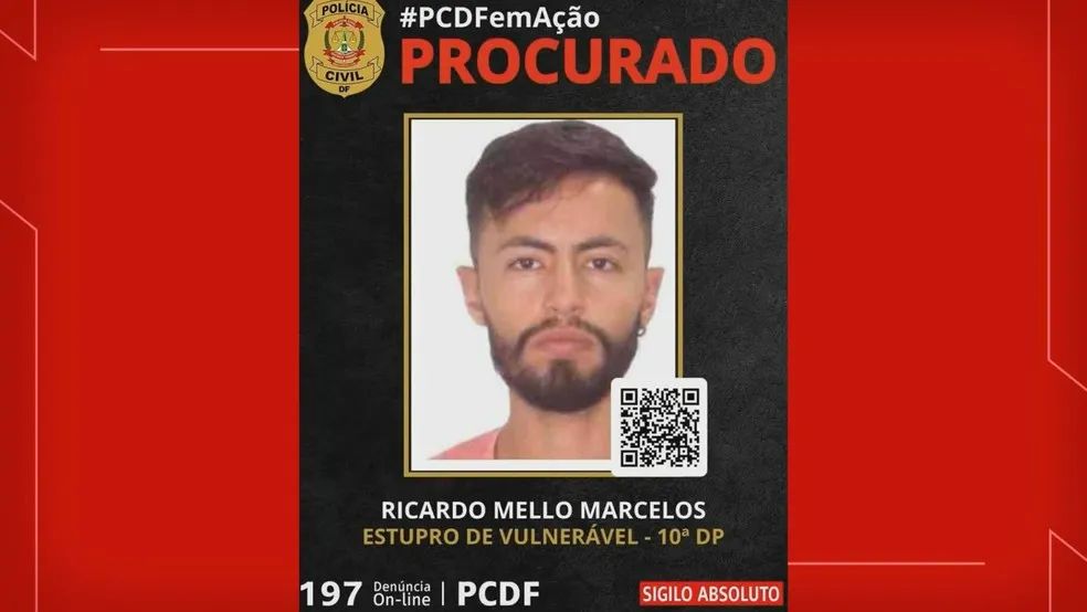 23 岁的体育教师里卡多·梅洛·马塞洛斯(Ricardo Mello Marcelos)因涉嫌在联邦区 Jardim Botânico 强奸一名 9 岁男孩被巴西警方通缉,并被列入国际刑警组织的通缉名单。