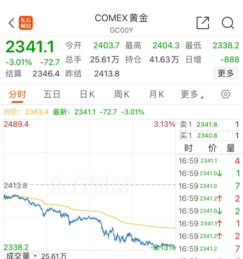 太突然!金价大跌
