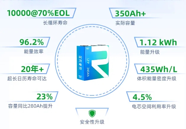 在储能电池方面,瑞浦兰钧问顶储能系列陆续推出320Ah、340Ah,以及实际容量突破350Ah的345Ah电池等产品。