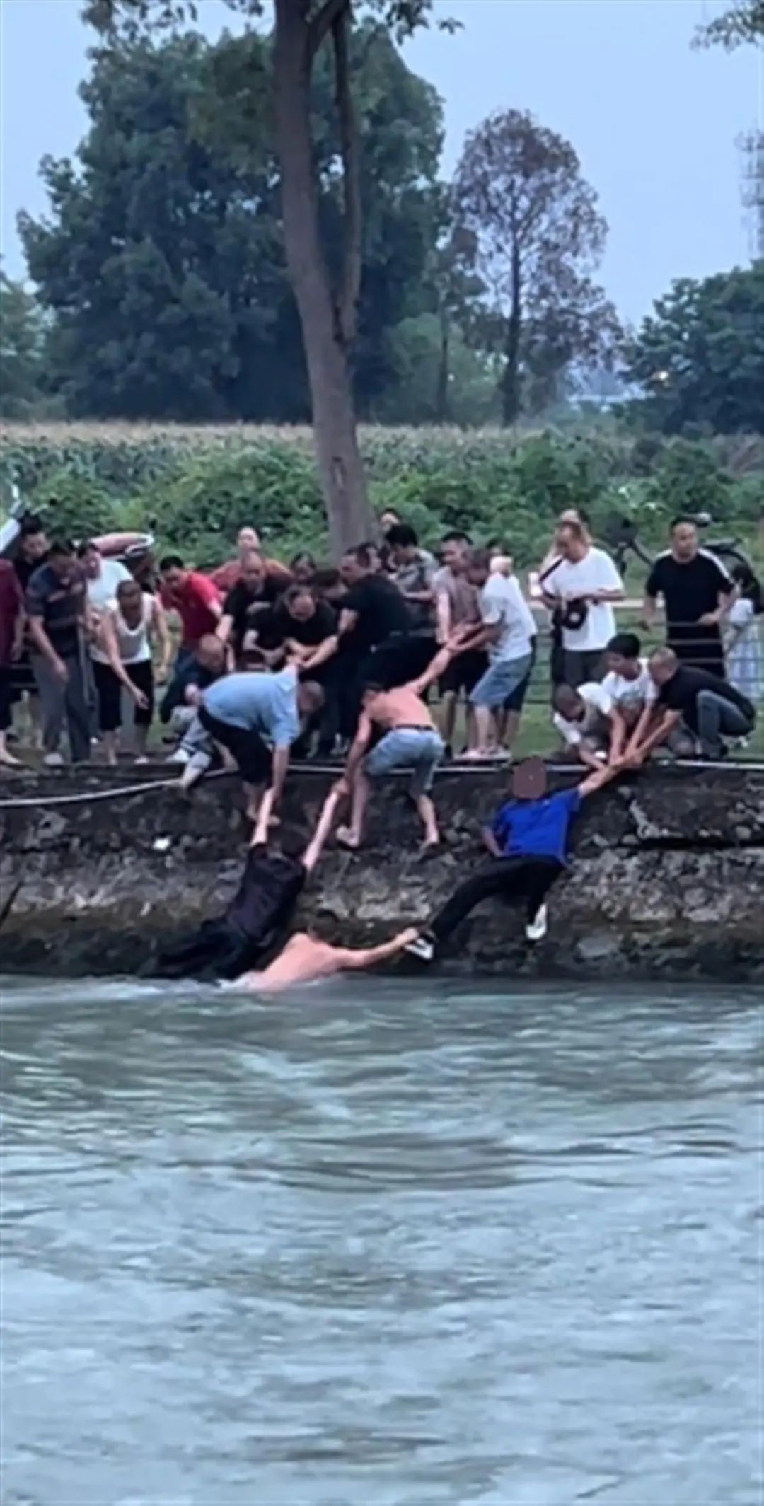 6月13日,四川成都郫都区一辆轿车落入河中,一位大爷在漂流的车上砸开车玻璃,后又有多人参与施救。