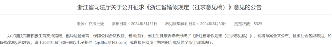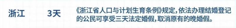 近日,浙江省司法厅、省卫生健康委修改形成了《浙江省婚假规定(征求意见稿)》。其中提到,依法办理结婚登记的职工,享受婚假十天;参加婚前医学检查的,增加婚假三天。