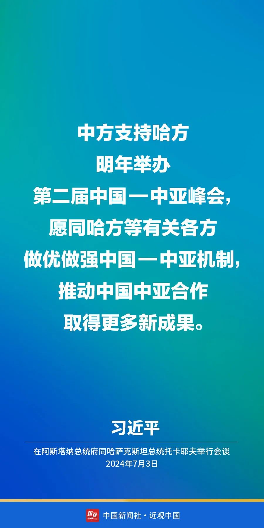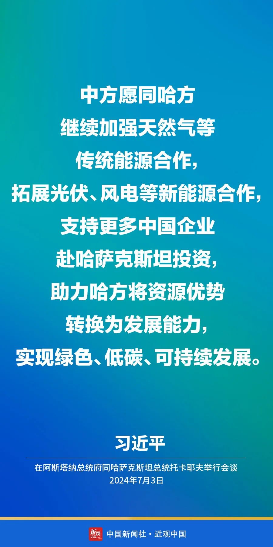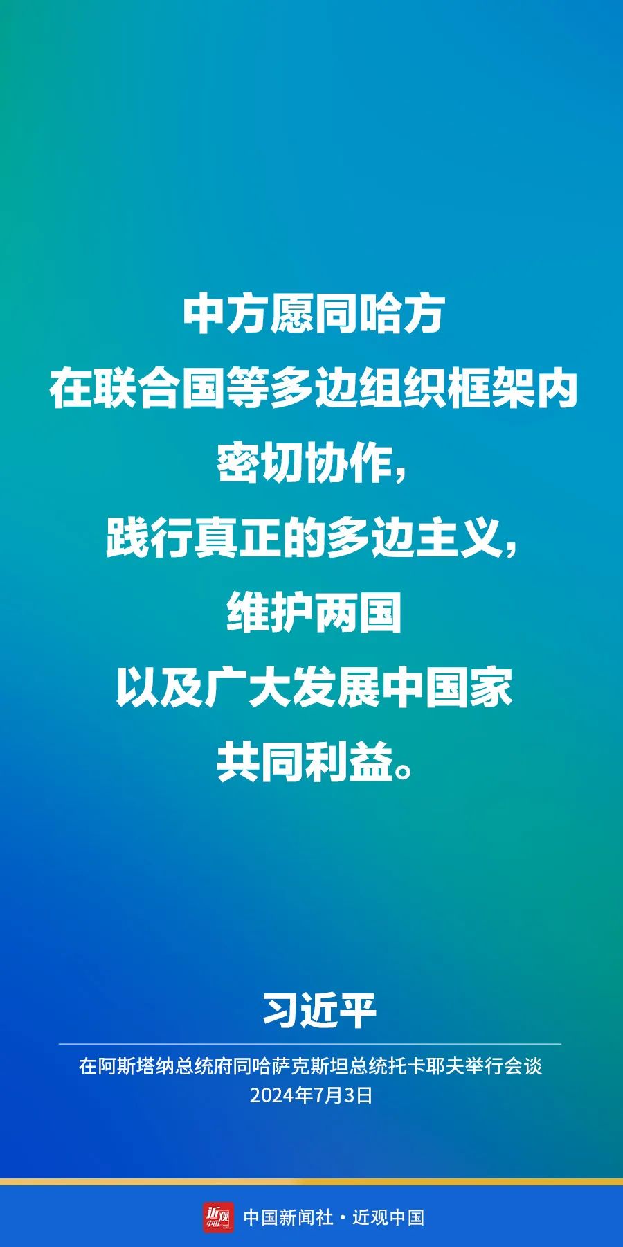 当地时间7月3日上午,国家主席习近平在阿斯塔纳总统府同哈萨克斯坦总统托卡耶夫举行会谈。他指出——