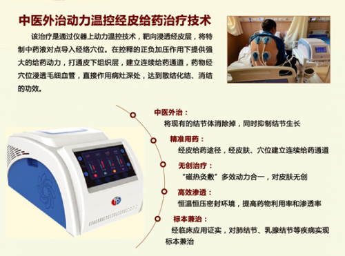 在中医辨证组方内服的基础上,戴院长医护团队运用先进的TTS技术靶向经皮给药,依据不同肿瘤患者的病症、脉相等,开具一人一方的特制中药组方,经设备作用于不同穴位。
