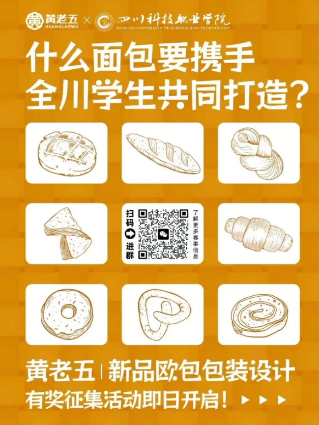 此次欧包新品的包装设计大赛将面向全川大学生开放,参与者将有机会通过自己的创意,设计出符合黄老五品牌形象且具备市场竞争力的包装方案。获奖作品将有机会成为最终产品的正式包装, 不仅能够获得丰厚的奖品,还将有机会与黄老五品牌深度合作,参与到更多创意项目当中。