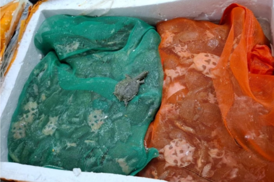Vigiagro的团队最初以为这批货物是螃蟹或新鲜的鱼类,但在打开行李后,他们惊讶地发现里面装满了大量幼年乌龟。怀疑这些乌龟将被用作中医药的原材料。
