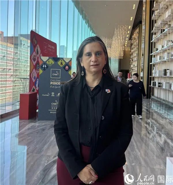 智利农业部副部长伊格纳西娅·费尔南德斯(Ignacia Fernández)接受人民网记者专访。人民网记者 吴思萱摄