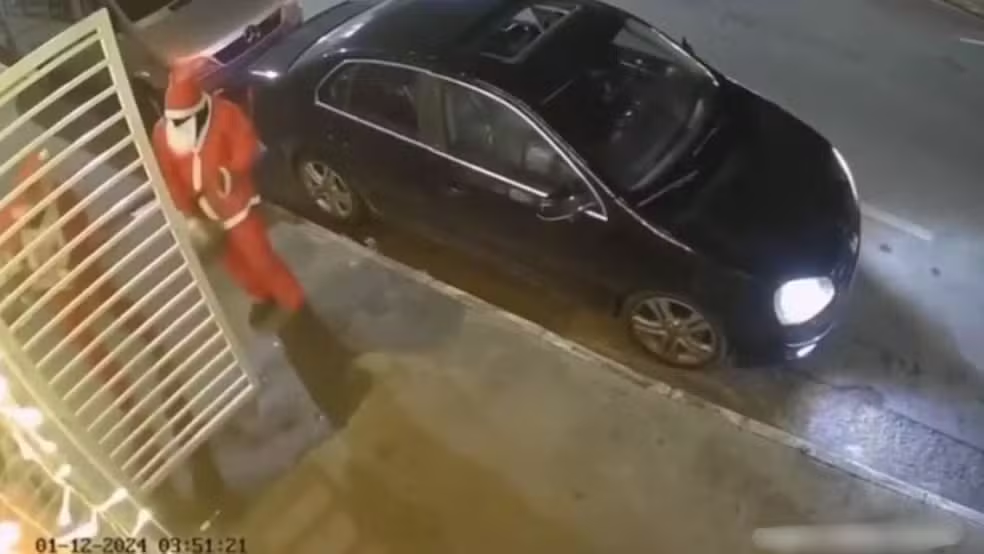 犯罪分子打扮成圣诞老人,入侵并从 MG 州 Cláudio 的一家电子商店偷窃 — 照片:复制品