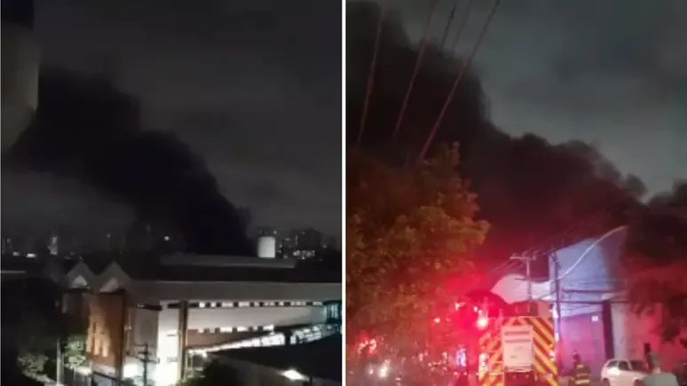 Incêndio de grandes proporções atinge galpão no Ipiranga, na zona sul de SP