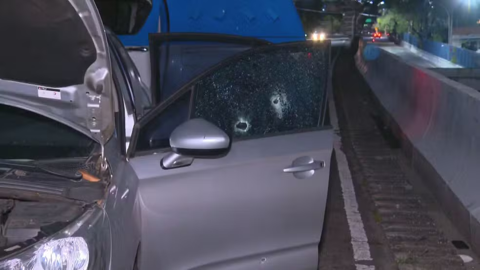 一名应用程序司机的汽车在交火中陷入困境 — 照片:Representation/TV Globo
