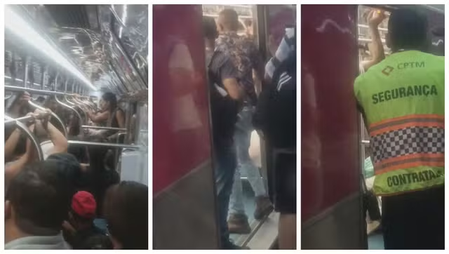 周二(25 日)下午,CPTM 7-Rubi 线 Piqueri 站发生乘客打架事件。— 图片:Montage/g1/TV Globo