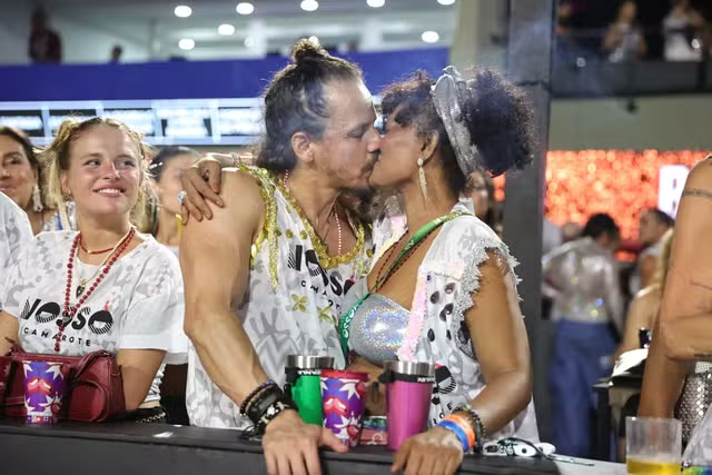 伊莎贝尔·菲拉迪斯 (Isabel Fillardis) 在萨普卡伊 (Sapucaí) 与男友接吻 — 图片:Anderson Bordê/AgNews