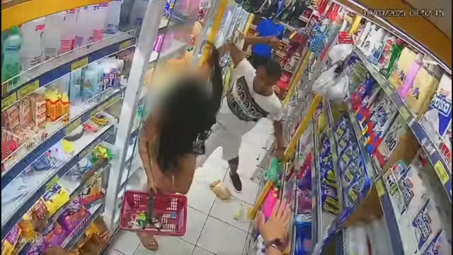 圣保罗一家超市,男子对女友面部拳打十二下,后因家庭暴力和身体伤害被捕