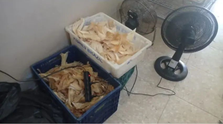 A operação é resultado de uma investigação que tem como objetivo desarticular uma rede criminosa especializada na receptação e exportação ilegal de partes de tubarões, cuja origem não foi comprovada.363 kg pertencem a espécies ameaçadas de extinção, o que agrava a situação penal dos envolvidos. Já 859 kg são de espécies não ameaçadas, embora igualmente comercializadas de forma irregular.A operação foi realizada pela Polícia Federal e Instituto Brasileiro do Meio Ambiente e dos Recursos Naturais Renováveis (Ibama).所有物品都存放在不卫生的环境中,准备非法出口。