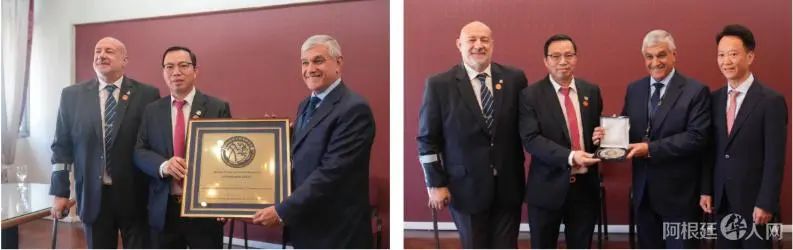 阿根廷联邦警察总局局长路易斯·亚历杭德罗·罗莱和刘芳勇互赠纪念品。罗莱局长表示非常荣幸参加此次活动;并指出,经阿根廷安全部特别批准,从2022年起,阿根廷联邦警察大学研究院与阿根廷华文教育基金会合作开展这个公益教学项目,旨在教授警察大学学生学习中文,帮助阿根廷警方解决受理华人案件时的语言难题。他希望警员能将中文学习与警察职业相结合,学以致用,为中阿两国的安全合作作出更多贡献。