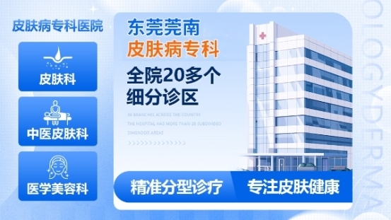 东莞莞南皮肤病专科是一所集医疗、科研、教学于一体的现代化皮肤病诊疗机构。医院始终秉承"以患者为中心"的服务理念,践行"精医厚德,服务为民"的办院宗旨,通过专业化诊疗体系、人性化服务模式和人文关怀理念,为患者提供高品质的皮肤病健康管理服务。