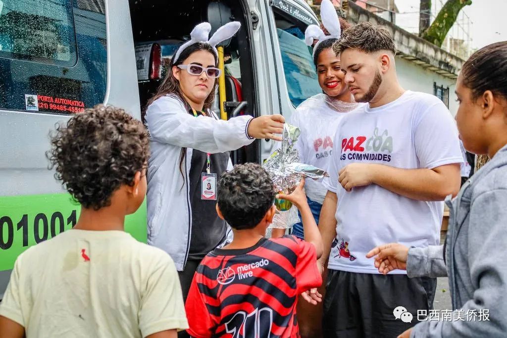 巴西非政府组织“社区之声”向里约贫民窟儿童分发巧克力。《圣保罗页报》4月8日,巴西非政府组织“社区之声”(VozdasComunidades)向里约热内卢市(RiodeJaneiro)北部阿莱芒(Al