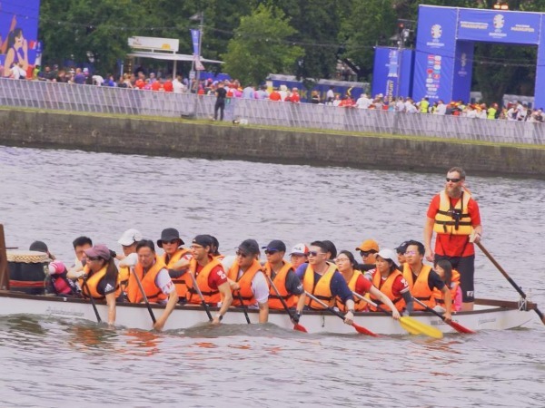 【转载点新闻报道】在德国第五大城市法兰克福,莱茵河的支流美茵河蜿蜒流过,给这座以金融、运输闻名的现代大都会,增添一份闲情逸致。河流催生了水上运动文化,鼓声激昂、飞桨逐浪,中国民间传统体育文化活动赛龙舟